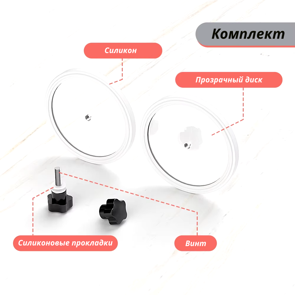 Защита этикетки (яблока) винила 12" обеспечивает профессиональную защиту лейблов ваших виниловых пластинок во время чистки, будь то влажная чистка или мойка. Прозрачные акриловые прижимы скручиваются, зажимая пластинку между собой, а внутренние уплотнительные кольца и уплотнители на винтовых зажимах обеспечивают надежную защиту от попадания влаги. В комплекте идет чистящая ткань.