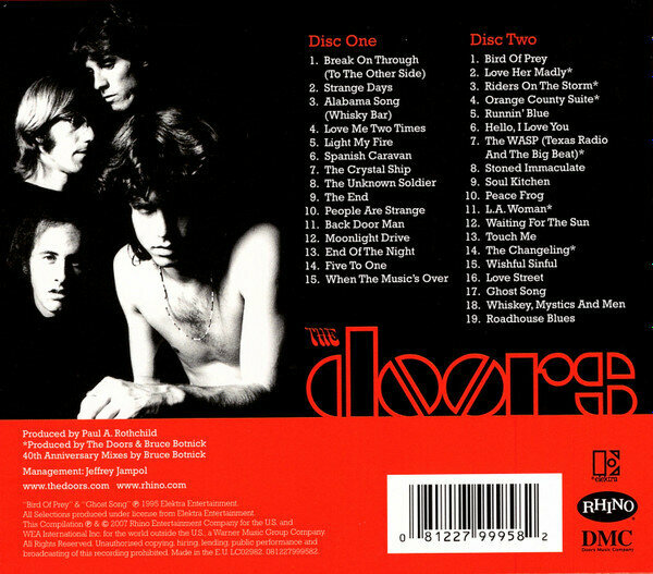 Другие хиты, такие как “Riders on the Storm”, “Break On Through (To the Other Side)” и “People Are Strange”, дополняют первый диск, предоставляя слушателю широкий спектр их творчества. От мрачных и таинственных до энергичных и загадочных, эти песни погружают нас во вселенную The Doors и вызывают множество эмоций.