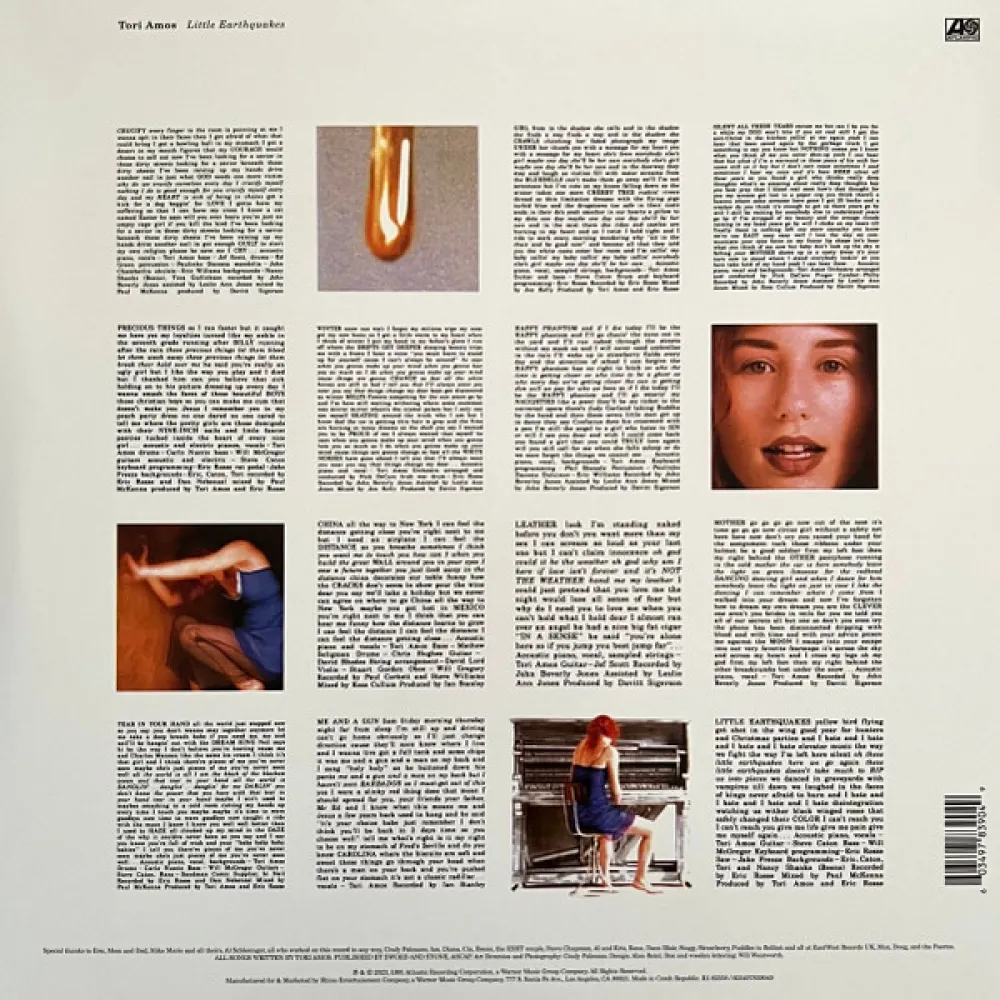 "Little Earthquakes" - это дебютный студийный сольный альбом певицы Тори Эймос. В Великобритании альбом достиг 14 строчки в "Top 75 charts", не сдавая позиций в течение 23 недель. Через месяц "Little Earthquakes" вышел в США и вскоре поднялся на наивысшие позиции в чартах. Альбом включает в себя такие синглы как "Silent All These Years", "China", "Winter" и "Crucify". По версии журнала "Q" альбом занимает 66-ую позицию в списке "Наилучшие альбомы всех времен" и 4 место среди "Величайших альбомов всех времен от исполнителей-женщин". "Little Earthquakes" вошел в книгу "1001 Albums You Must Hear Before You Die".Ремастированное переиздание на двойном чёрном виниле.Тори Эймос - американская певица, пианистка, композитор и автор песен родом из Северной Каролины, сочетающая в своем творчестве элементы джаза, экспериментальной электроники, альт-, фолк- и прогрессивного рока (в основном аккомпанирующий инструмент фортепиано). В 1984 году Tori собирает группу "Y Kant Tori Read", которая распадается накануне дебютного альбома. Критики не оценили "этот невыразительный поп-метал" после чего певица решает создавать музыку, в которую она верит.