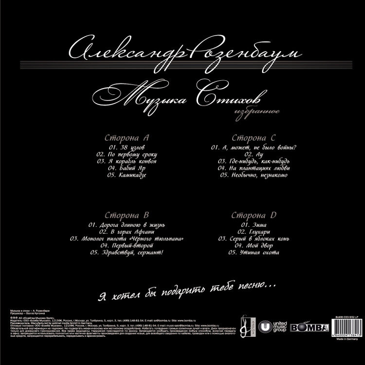 Виниловая пластинка Александр Розенбаум - Я Хотел Бы Подарить Тебе Песню (2LP)
