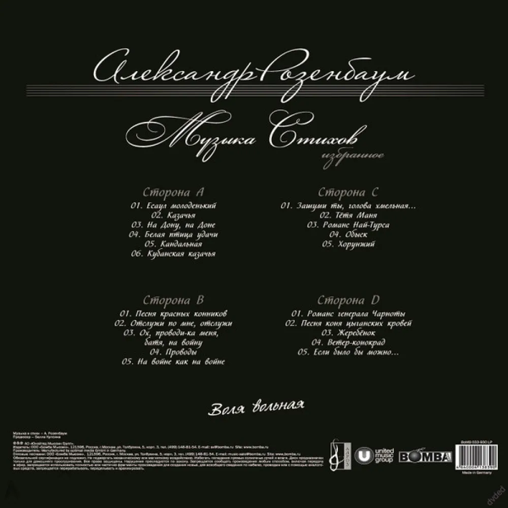 "Воля Вольная" - альбом-компиляция 2019 года на двойном виниле лучших раннее изданных песен советского и российского певца, автора-исполнителя Александра Розенбаума.