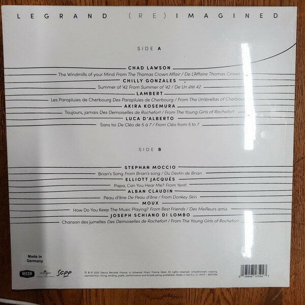 "Legrand: (re)imagined" - альбом трибьют Мишелю Леграну, в который вошли самые знаменитые произведения композитора, среди них темы к фильмам "Афера Томаса Крауна", "Лето 42-го", "Шербурские зонтики", в исполнении Чеда Лоусена, Чилли Гонзалеса, Альбана Клодина и других современных музыкантов.