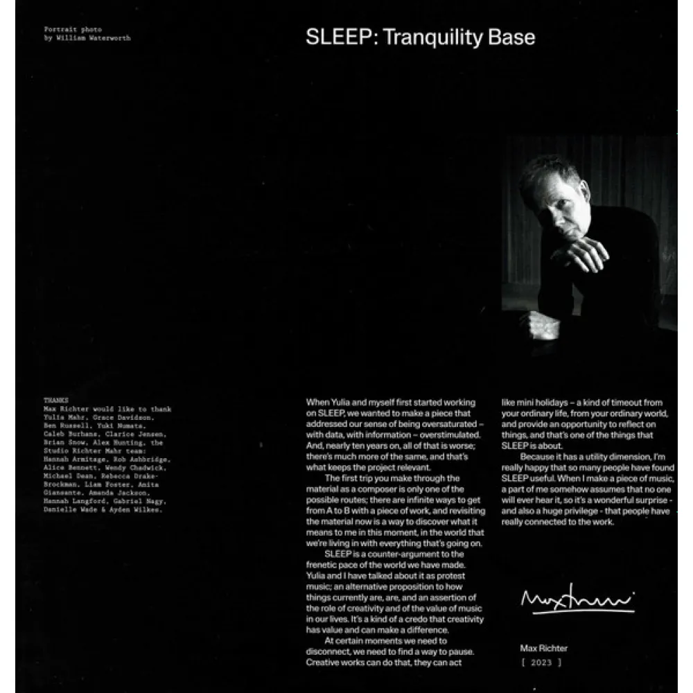 Макс Рихтер представляет «SLEEP: Tranquility Base», новый альбом с оригинальными композициями, продолжающий его проект о сне, начатый в 2015 году. Теперь доступен в виниловой версии!