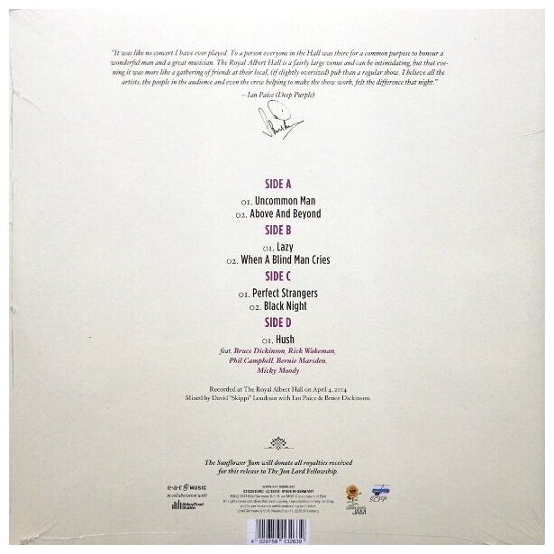 Шоу "The Sunflower Jam" с участием музыкантов и друзей группы Deep Purple и других великих исполнителей, прошедшее в Лондонском Royal Albert Hall в 2014 году, представляет классические рок-композиции, которые были написанны Джоном Лордом. Среди участников концерта известные музыканты Рик Уэйкман, Брюс Дикинсон, Берни Марсден, Мик Муди.