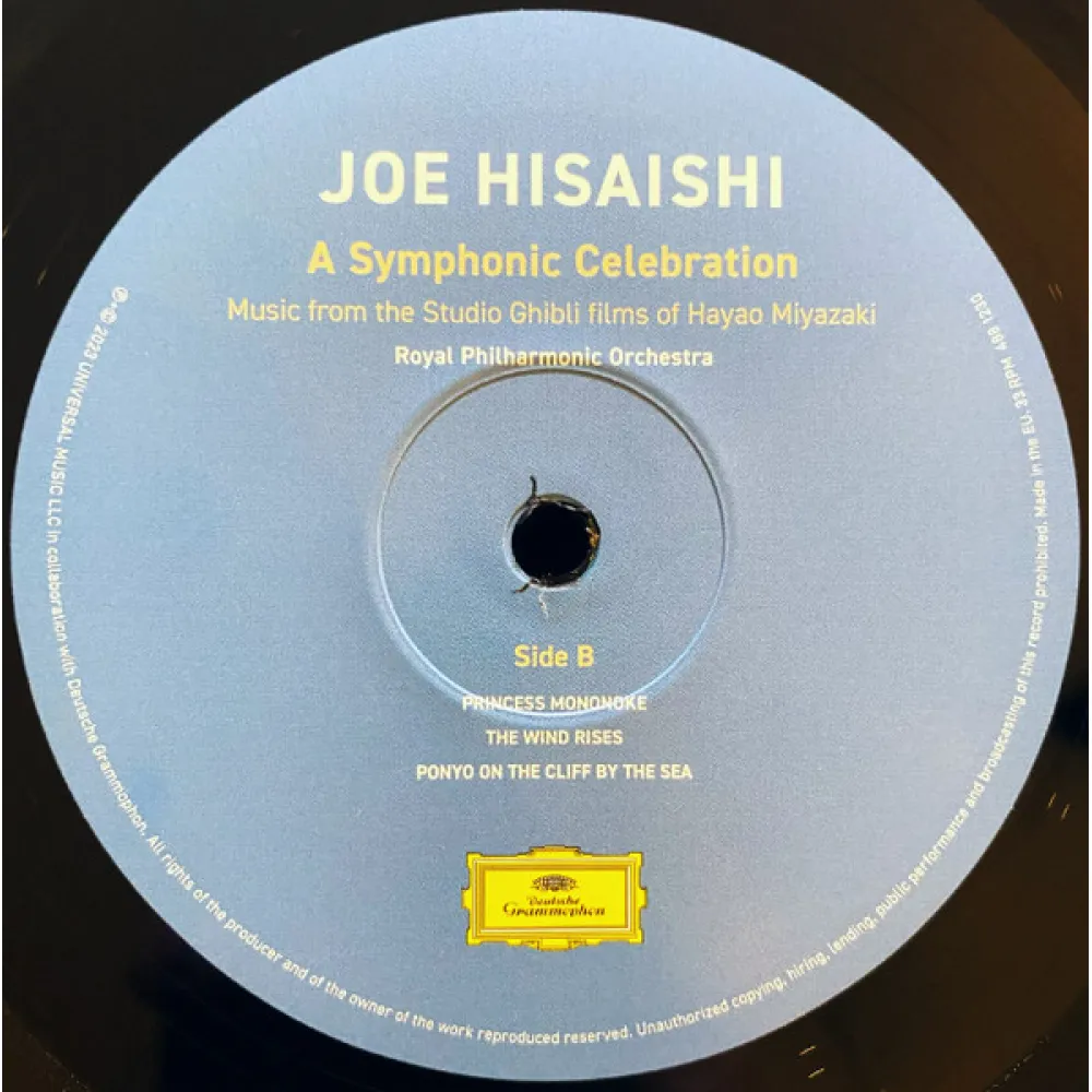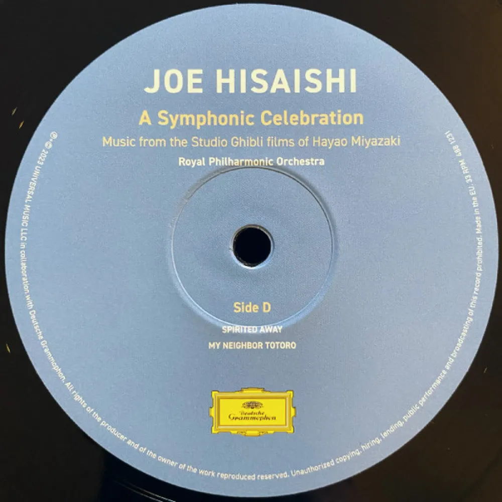 "A Symphonic Celebration - Music From The Studio Ghibli Films Of Hayao Miyazaki" - коллекция музыки на виниле композитора Дзё Хисаиси к кино-шедеврам непревзойденного японского мастера аниме Хайяо Миядзаки в исполнении Королевского филармонического оркестра. ("Навсикая из Долины ветров", "Мой сосед Тоторо", "Принцесса Мононоке", "Ветер Крепчает", "Рыбка Поньо на утёсе", "Навсикая из Долины ветров", "Порко Россо", "Ходячий замок Хаула", "Унесенные призраками" и др.). Дирижёр - сам Дзё Хисаиси.