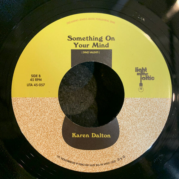 «Something On Your Mind» — вступительный трек из классического альбома Карен Далтон 1971 года «In My Own Time». Песня была написана Дино Валенти из Quicksilver Messenger Service и определена удивительным голосом Карен Далтон , который сравнивают с голосом Билли Холидей . На этом 7-дюймовом альбоме версия Далтон сочетается с версией американской певицы/автора песен и большой поклонницы Карен Далтон Энджел Олсен .