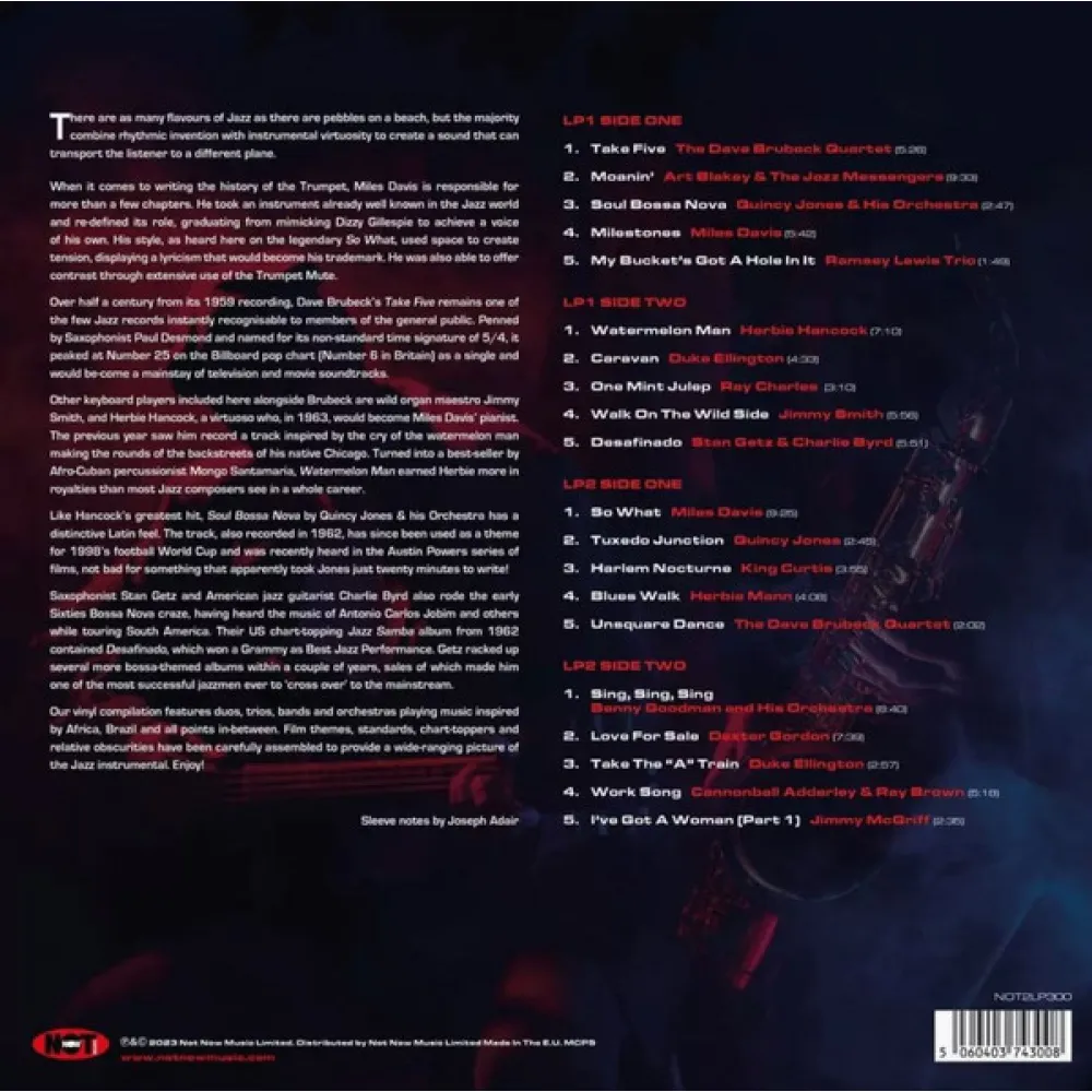 Этот сборник представляет собой непревзойденную коллекцию инструментальных джазовых произведений, исполненных различными артистами. Включая музыку таких талантливых музыкантов, как Miles Davis, John Coltrane, Bill Evans и мнogие другие, данный альбом предлагает уникальную возможность насладиться музыкой, созданной великими джазовыми мастерами.