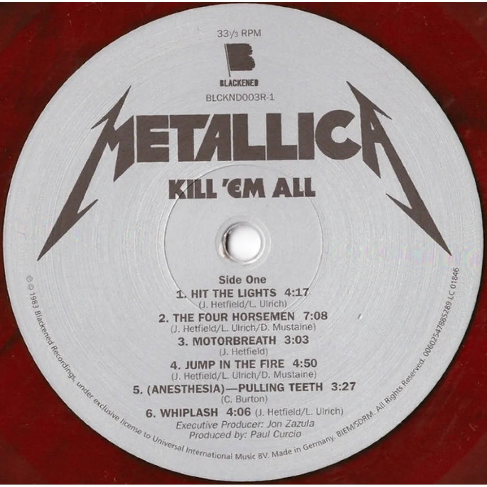 "Kill 'Em All" - ремастированное переиздание дебютного альбома легендарной трэш-метал группы Metallica, выпущенного в 1983 году. Он стал знаковым как для метал сцены, так и для самих музыкантов. Альбом первоначально хотели называть "Metal Up Your Ass", но был переименован в "Kill 'Em All" по причине цензуры. Именно эта работа принесла группе популярность, альбом стал трижды платиновым.
