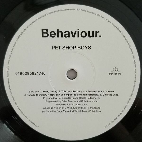 "Behaviour" - ремастированное переиздание альбома 1990 года группы Pet Shop Boys на виниле.