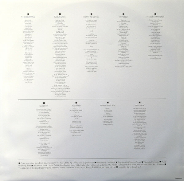 "Meat Is Murder" - второй студийный альбом британской группы The Smiths, выпущенный в феврале 1985 года. В текстовом отношении "Meat Is Murder" стал более резким в политическом плане, чем его предшественник, а также в заглавном треке затронул тему вегетарианства, что также следует из названия релиза. Альбом стал первым релизом, достигшим первой строчки британского чарта ещё при существовании группы, и продержался там в общей сложности 13 недель. Также он достиг 110-й строчки в США. В 2003 году журнал Rolling Stone поместил альбом на 295-е, а в 2012-м - на 296-е место в списке "500 величайших альбомов всех времён".