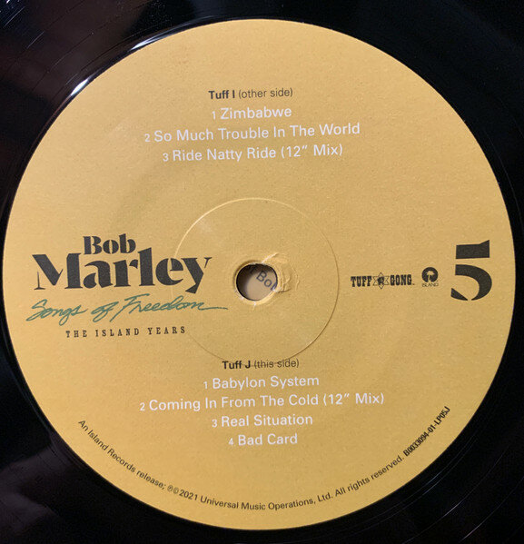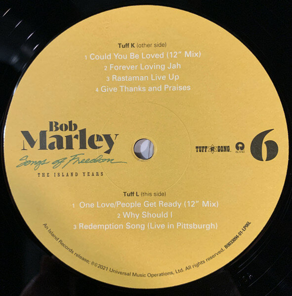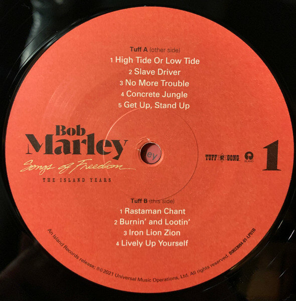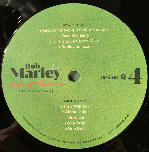 "Songs Of Freedom - The Island Years" - впервые на виниле, антология творчества рэгги-музыканта Боба Марли. Данное издание включает множество песен от "Concrete Jungle" до "Redemption Song, а также редкие миксы, би-сайды, ямайские синглы и альтернативных версии песен.