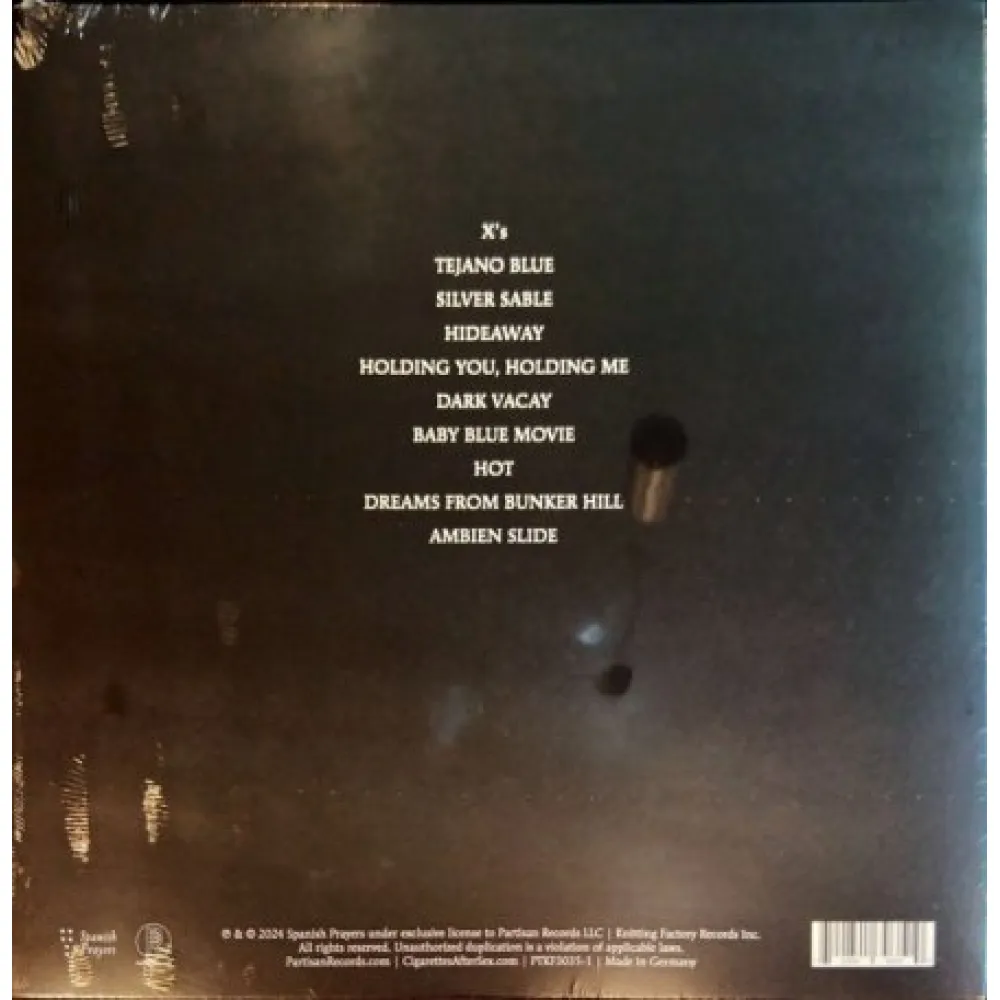 X's - третий студийный альбом американской эмбиент-поп-группы Cigarettes After Sex, выпущенный в 2024 году. Ему предшествовал выпуск трех синглов: "Tejano Blue", "Dark Vacay" и "Baby Blue Movie". В записи релиза принял участие продюсер и участник группы The Voidz - Джефф Кайт. После выхода альбом достиг второй строчки в чарте Великобритании и 32-ую позицию в Billboard 200. Издание представлено на черном виниле. Cigarettes After Sex - американская эмбиент-поп группа, основанная в 2008 году в Эль-Пасо Грегом Гонзалесом. Имеют узнаваемый лёгкий и расслабленный музыкальный стиль. Песни о романтике и любви, спетые «,андрогинным», голосом Гонзалеса, имеют влияние шугейза, дрим-попа и слоукора.