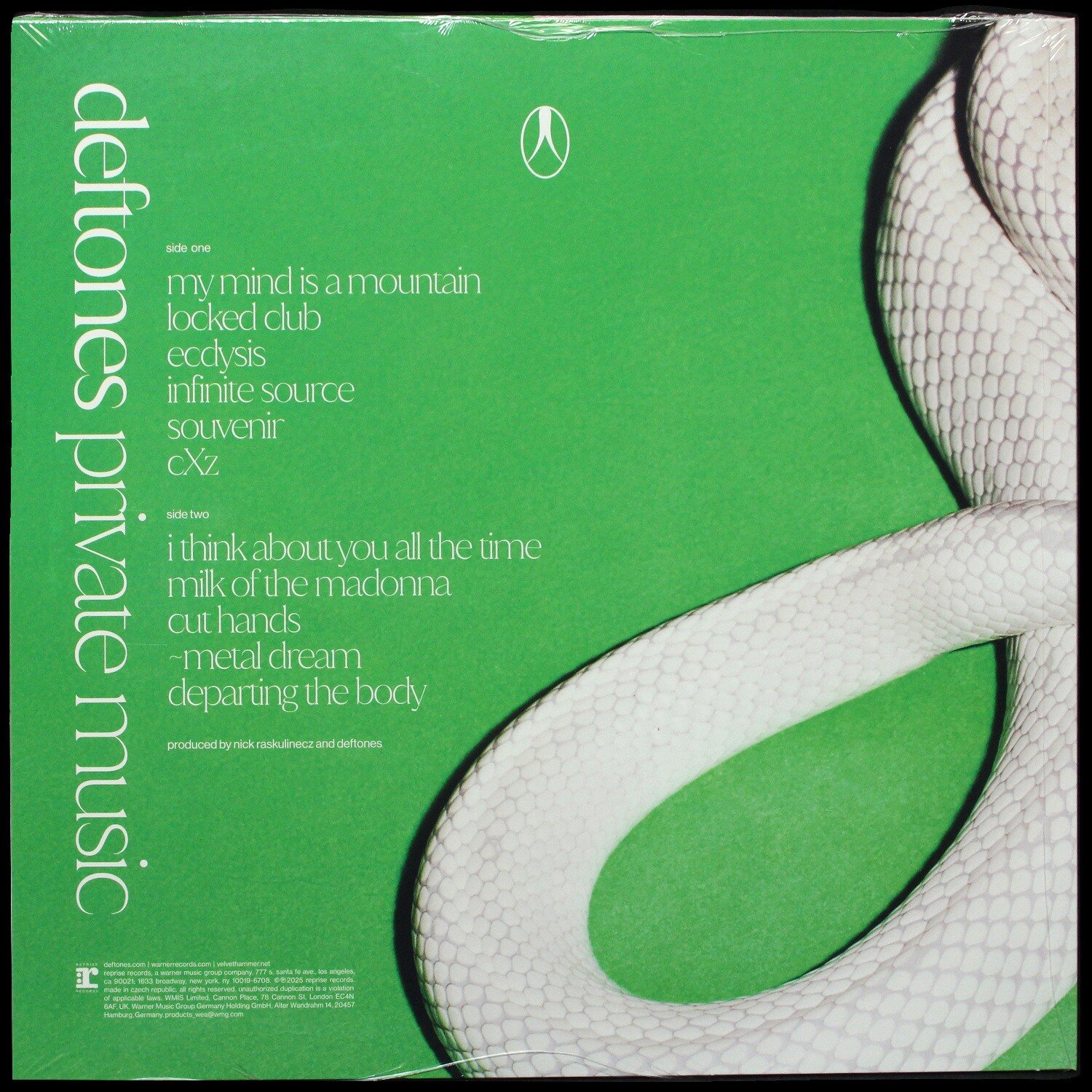 Виниловая пластинка Deftones - Private Music — десятый студийный альбом Deftones, выпущенный в августе 2025 года. Группа вернулась с материалом, подчеркивающим их уникальные музыкальные особенности и внутренний мир участников.