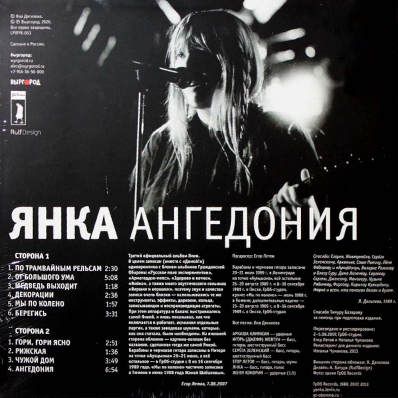Лимитированное ремастированное переиздание студийного альбома "Ангедония" советской Янки Дягилевой, записанного в 1989 году.
