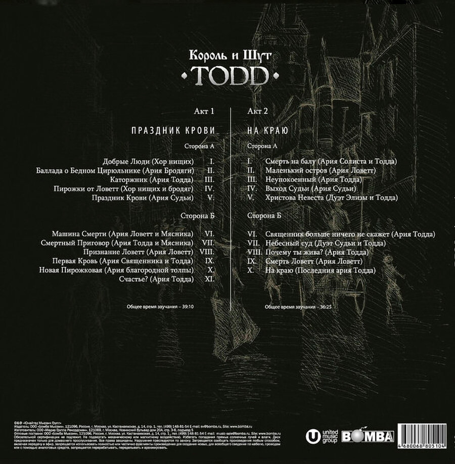 Этот релиз можно с уверенностью назвать не просто альбомом, а настоящим музыкальным аудиоспектаклем. Все песни на пластинке связаны между собой единой драматической линией, отраженной в тексте рассказчика. Историю Суинни Тодда специально для пластинки озвучил легендарный актер, на счету которого более восьмидесяти ролей в театре и кино, режиссер, сценарист и литератор Вениамин Смехов. Безусловно, все участники «Короля и Шута» сочли за честь поработать с любимым с детства артистом. Сам артист тоже остался доволен сотрудничеством с музыкантами.