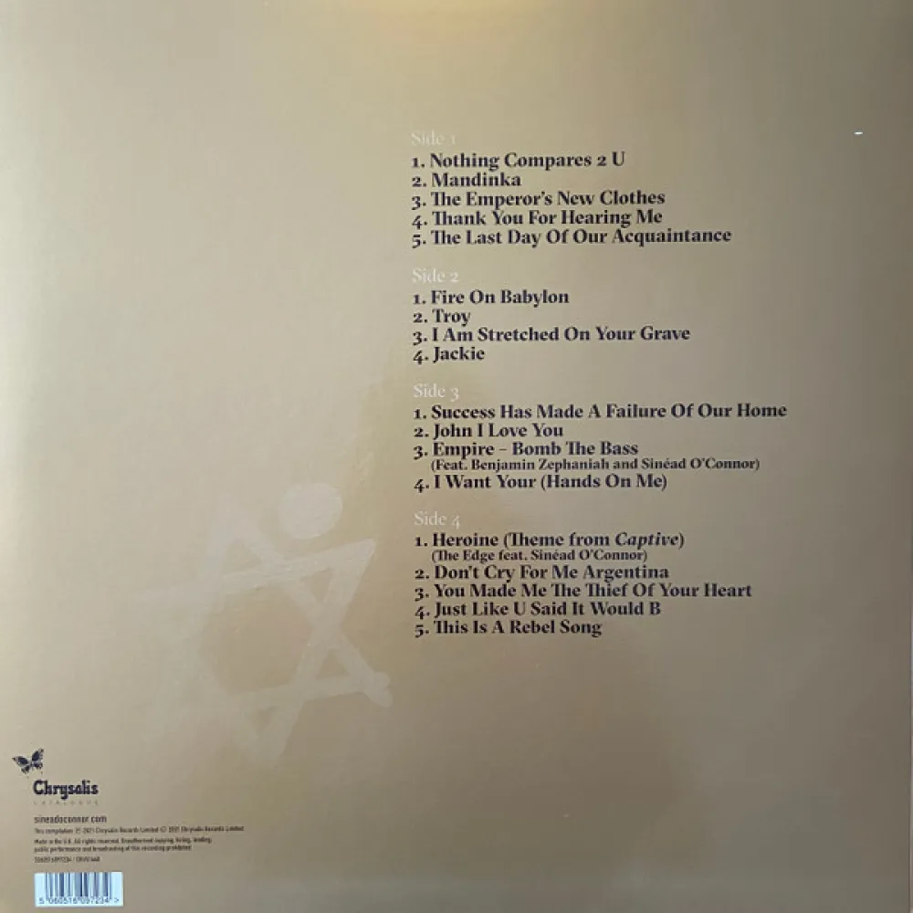 Сборник лучших записей знаменитой ирландской певицы Шинейд О'Коннор на двойном прозрачном виниле.