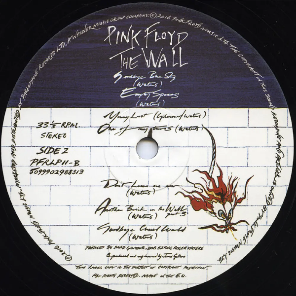 Новое переиздание на тяжелом 180-грамовом виниле альбома The Wall британской рок-группы Pink Floyd. Пластинка упакована в разворотный конверт (Gatefold) и включает все оригинальные композиции, которые были ремастированны. Альбом вышел в 1979 году и стал последним, который был записан в классическом составе.