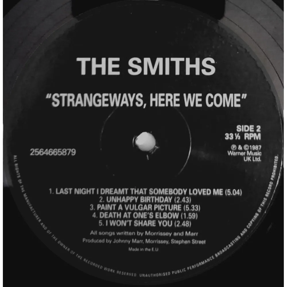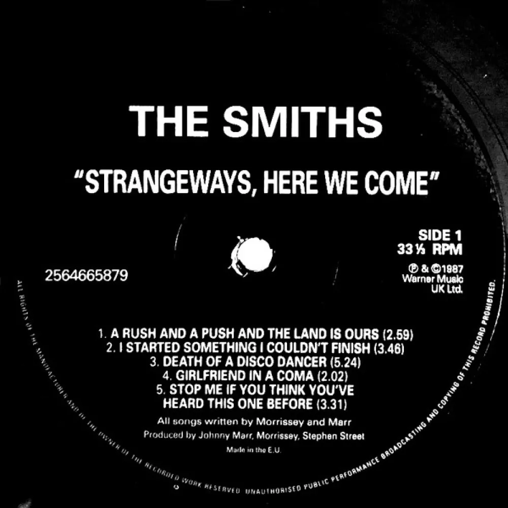 "Strangeways, Here We Come" - ремастированное переиздание студийного альбом а группы The Smiths, первоначально выпущенного в 1987 году. Альбом достиг второй строчки британского чарта и продержался там семнадцать недель; в Billboard 200 альбом занимал 55-ю строчку, а 19 сентября 1990 года получил золотую сертификацию от американской ассоциации RIAA. Все песни написаны Моррисси и Джонни Марром, а автором обложки, на которой изображён актёр Ричард Давалос из фильма "К востоку от рая", традиционно стал Моррисси. Запись пластинки проходила в марте 1987 года, а в сентябре, в период выхода альбома, группа уже месяц считалась распавшейся, после того, как в июле Джонни Марр объявил о своём уходе.