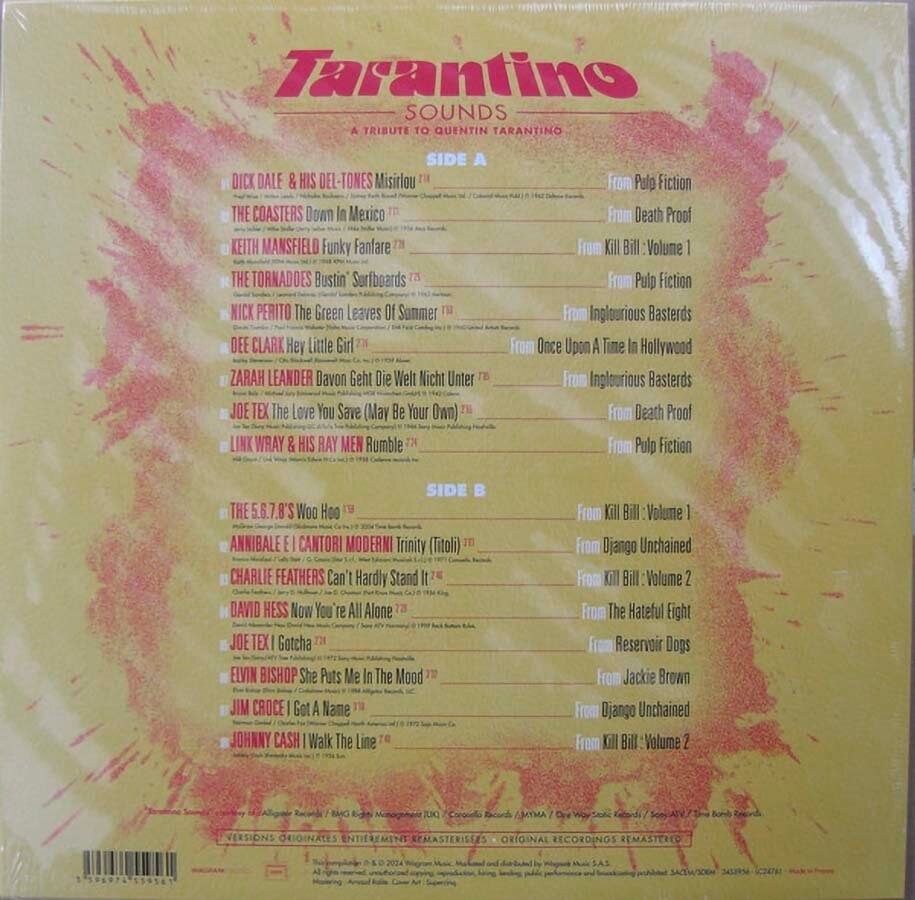 "Tarantino Sounds - A Tribute To Quentin Tarantino" - сборник лучшей музыки из самых культовых фильмов Квентина Тарантино, выпущенный в 2024 году. В нем представлены знаковые композиции таких исполнителей, как Дик Дейл, Джо Текс, The Coasters, The 5.6.7.8’s, Ди Кларк, Кит Мэнсфилд, Джонни Кэш и многие другие.