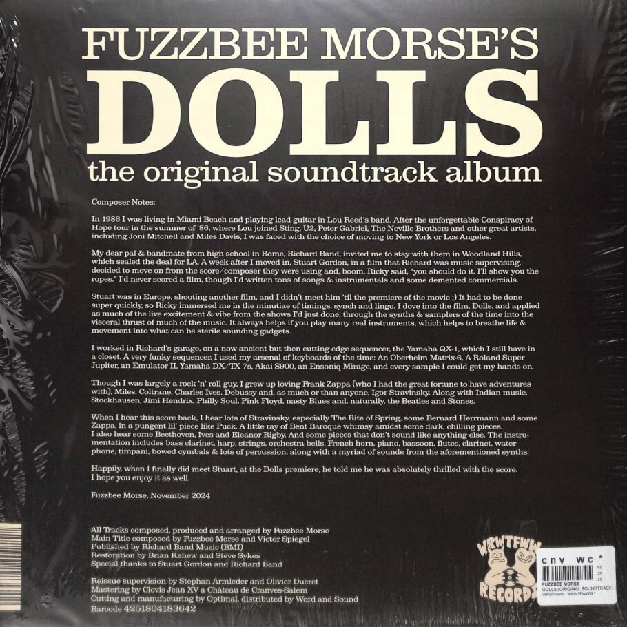 Выпуск виниловой пластинки. Полная версия культового фильма ужасов "КУКЛЫ" 1987 года от Empire Pictures режиссера Стюарта Гордона ("Реаниматор", "С того света", "Робот Джокс") - наконец-то! Музыка великого мультиинструменталиста, продюсера, композитора и певца ФАЗЗИ МОРСА (Ghoulies II!).