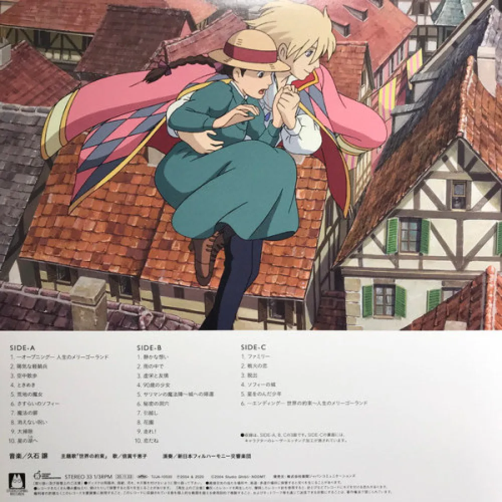 "Howl's Moving Castle" - саундтрек к полнометражному анимационному фильму 2004 года Хаяо Миядзаки "Ходячий замок". Автор музыки — один из самых известных японских композиторов Дзё Хисаиси. Лимитированное переиздание выпущено на двойном виниле с гравировкой на стороне D.