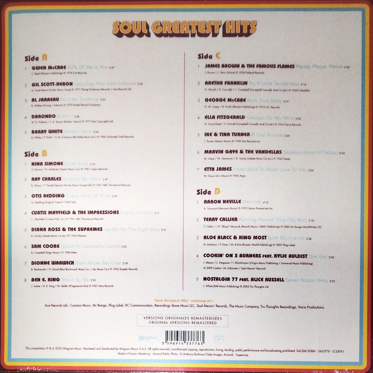"Soul Greatest Hits" - сборник соул музыки от различных исполнителей, выпущенный в 2022 году. Среди исполнителей числятся Арета Франклин, Рэй Чарльз, Нина Симон, Кертис Мэйфилд, Барри Уайт и многие другие.