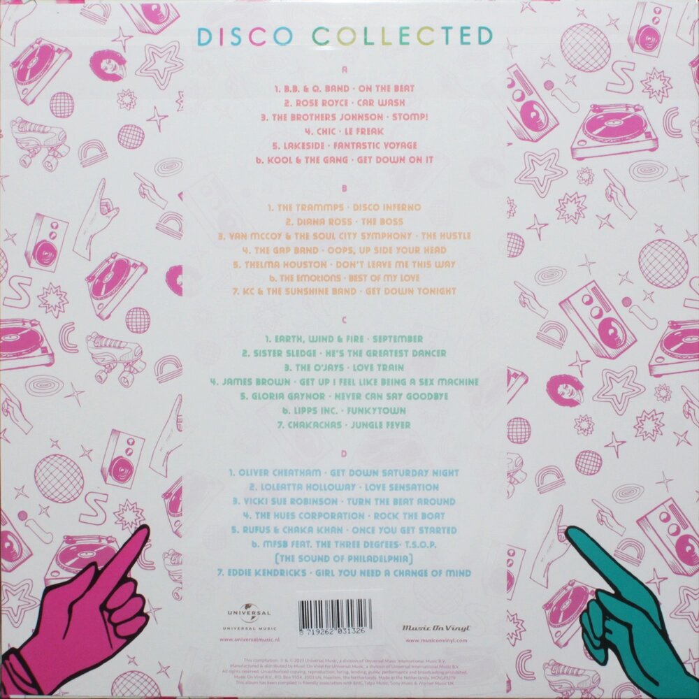 "Disco Collected" - сборник лучших и известных диско-хитов, выпущенный в 2023 году. На нем представлены композиции от таких исполнителей, как Rose Royce, Chic, Kool & The Gang, The Trammps, Тельма Хьюстон, KC & The Sunshine Band и других.